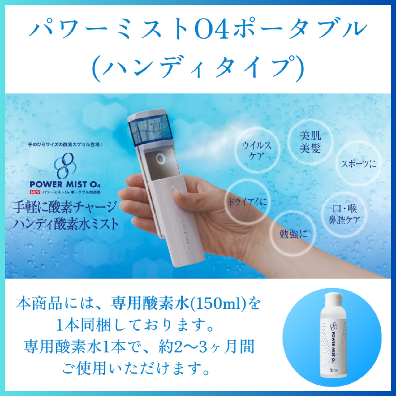 Power Mist O₄は、「飲む酸素」をミスト化し、肌(角質層まで)に直接届けることで、酸素不足による不調をケアし、リラックス効果と保湿を同時に叶える製品です。